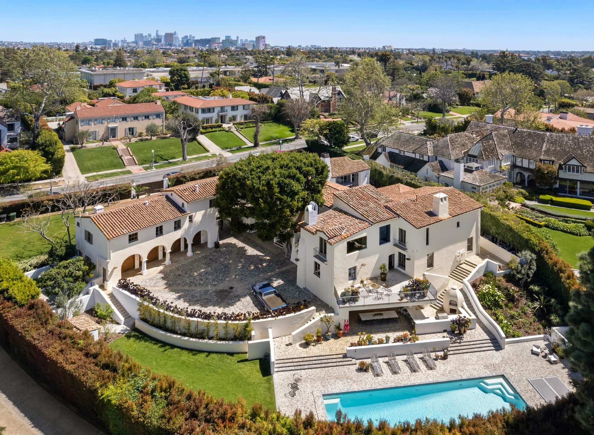 Nestled in the prestigious Hancock Park neighborhood of Los Angeles, this luxury vacation villa offers an exclusive escape in the heart of the city, ideally located only a 4-minute drive from the local shops and restaurants and a 25-minute drive from Santa Monica Beach. The standout features of this property include a charming courtyard, a heated pool, and beautiful views over the nearby golf course and the Hollywood Sign.