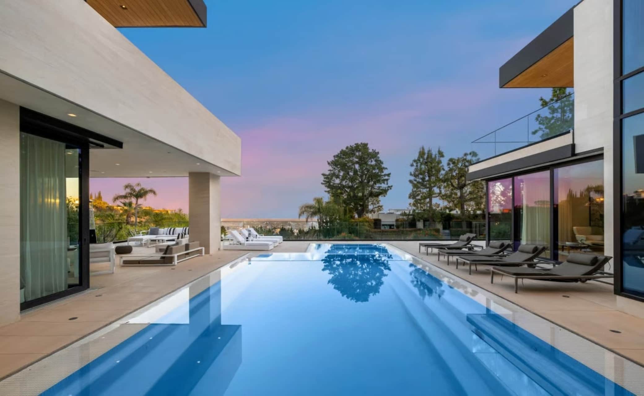 Situated in the prestigious Bird Streets of Los Angeles, this luxury vacation rental is conveniently located just a 9-minute drive from West Hollywood and a 30-minute drive from Santa Monica’s sun-soaked beaches. The standout features of this property include a home cinema, a gym, a wellness area with a sauna, an indoor pool and hot tub, a large heated outdoor pool and hot tub, and stunning views of the city and the ocean in the distance.